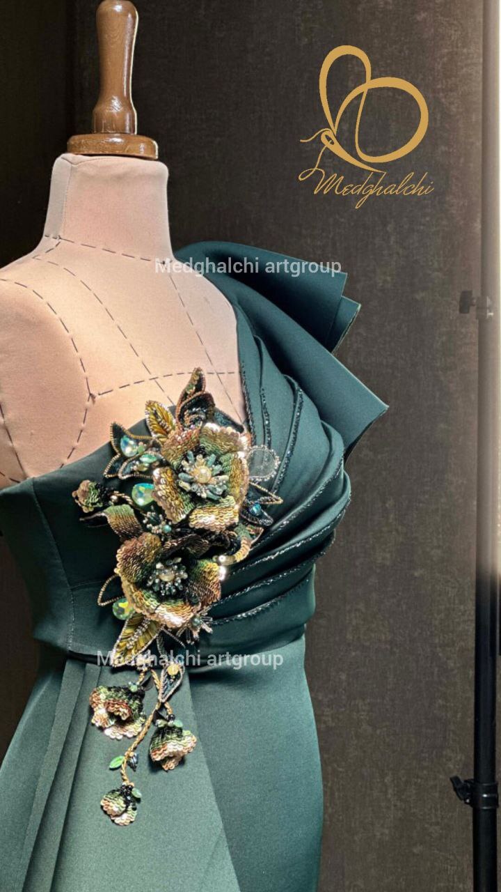 طرح زمرد : یک پنل بسیار خاص که از چند روش پولک دوزی به همراه منجوق بافت و یک تکنیک برجسته دوزی تشکیل شده