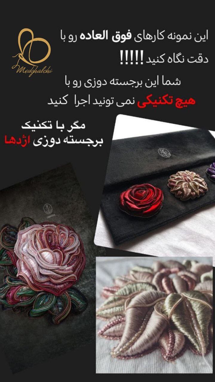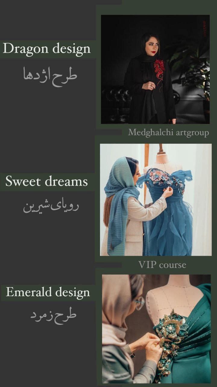 طرح اژدها: تلفیق بینظیری از دوخت های سنتی و مدرن به همراه یک برجسته دوزی حرفه ای و خاص که پس از اموختن این طرح میتوانید طرح های تلفیقی و ابتکاری منحصر به فرد خودتون رو اجرا کنید .